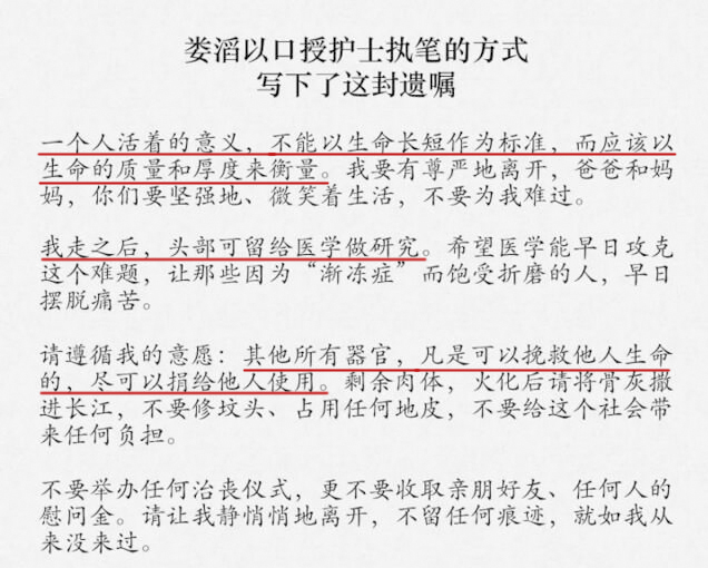 在患上漸凍癥后留下的遺囑。
